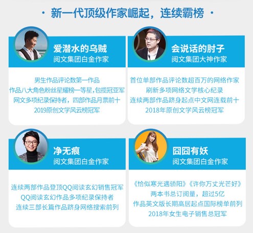 基于體系化、專業化的作家培養機制,2019年中生代作家崛起趨勢更加明顯,新人作家快速上升。中堅力量和新生力量互促,形成了更加精品、新穎、多元、健康的網絡文學內容形態和創作者梯隊結構。