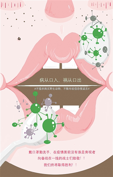 各大美術院校的同學們充分利用網絡平臺,迅速分析和了解疫情防控的相關知識,構思、探討、打磨,從不同角度進行海報創作。這些作品,有對中央應對疫情工作精神的宣傳,有對新冠肺炎圖文并茂的科普知識介紹,也有對禁食野味、杜絕病毒傳播渠道的嚴肅強調,更有對全民抗疫信心的鼓舞。每一幅疫情防控主題海報都是美院師生心系疫區、共克時艱的真情表達。