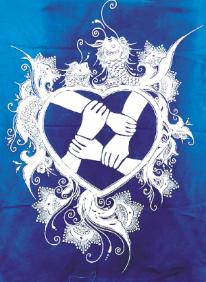 大型蠟染畫作品《戰必勝》長1.5米、寬1米,描繪了一位醫護人員的背影,一只高舉的手緊握成拳,兩邊裝飾著苗族傳統吉祥紋樣?!白髌分乇憩F抗擊疫情的鋼鐵力量?!薄丁罢帧鳖櫤米约骸烦尸F了兩只展翅高飛的吉祥鳥銜著一只口罩,意在提醒大家佩戴口罩、注意防護?!侗娭境沙?,抗擊疫情》系列作品主體圖案為四只手緊握在一顆心中,周圍裝飾著寓意吉祥的魚紋、蓮花紋和石榴紋,表現同心協力、共克時艱。