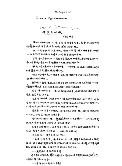 瞿秋白最初對高爾基《海燕》一文的翻譯手稿《暴風鳥的歌》