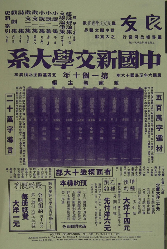 《良友畫報》第103期介紹《中國新文學大系》的整張廣告