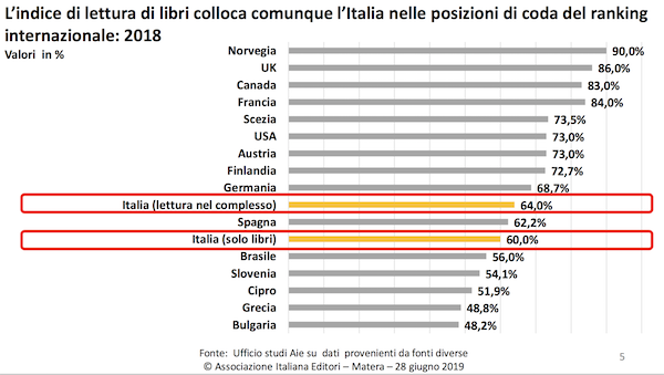 意大利出版商協會在成立150周年之際,特別強調了意大利中學生閱讀能力不如其它歐洲國家,表達了憂慮。如果青少年都不喜歡閱讀而且都不會閱讀,那出版社的未來又該何去何從。