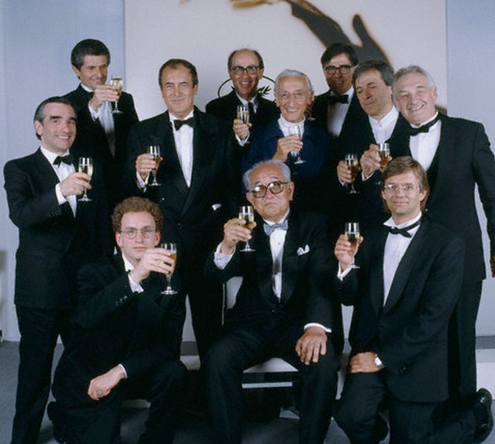 黑澤明(前排中)獲得奧斯卡終身成就獎后,諸多知名導演向他表示祝賀。小編認出合影中有馬丁·斯科塞斯、伯納德·貝托魯奇、史蒂文·索德伯格