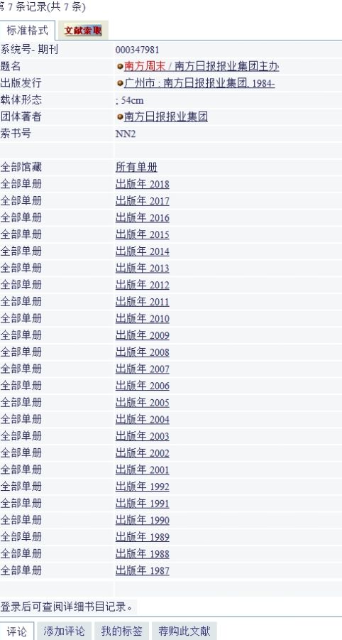 一旦我們想要進入圖書館查檢原報,就必須通過查詢圖書館在線“機讀目錄”、確認其是否已納入館藏這一程序。但是,正如我們所知,在圖書館“機讀目錄”中,一份報紙無論發行時間多長、總數有多少張、合訂本有多少冊,一般可能只有一個條目。在這一條目之下,除題目、著者等一般著錄的字段,也還羅列有館方依其發行年限或其他標準加工而成的各個合訂本的所謂“詳細書目記錄”,但很明顯,這仍然無法深入我們所需要的具體的某篇文獻。試想,假如沒有之前獲得的具體的發表時間等等信息,如何查找這篇專訪資料?無異于大海撈針。然而,這一切,恰是專門的目錄、索引可以派上用場的地方。不僅如此,正如北京大學中古史研究中心的史睿兄評論拙文時所指出的:“產生于計算機信息處理技術發展初期的機讀目錄,早已遠遠落后于當今信息處理技術發展水平,就知識體系而言不及紙本目錄,就直指關鍵詞檢索而言不及紙本索引等檢索工具書?!倍摇澳壳皥D書館的機讀目錄表面上便于檢索,因其完全無序(書目內在意義的順序),其實是取消了傳統目錄‘即類求書’功能,更不要說用以‘辨章學術、考鏡源流’了?!?/p>
