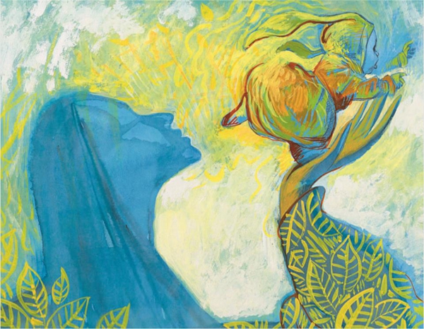 澎湃新聞:《媽媽身上有個樹林》是您跟梅子涵老師的第二次合作了,這是一個詩歌文本,對您來說,詩歌文本的繪本化是不是比故事文本更有挑戰性?您之前談到這本書的創作,提出了一個“具體畫面+抽象內容=詩意體驗”的說法,能具體解釋一下嗎?
