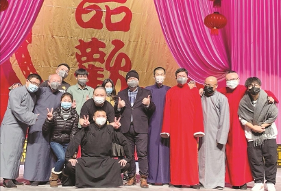 除夕前的最后一場演出,演員們合影時都戴上了口罩。 均受訪者供圖