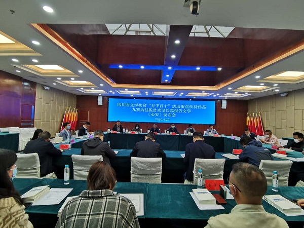 4月27日上午,四川省文學扶貧“萬千百十”活動重點扶持作品九寨溝縣脫貧攻堅長篇報告文學《心安》發布會在九寨溝縣舉行。