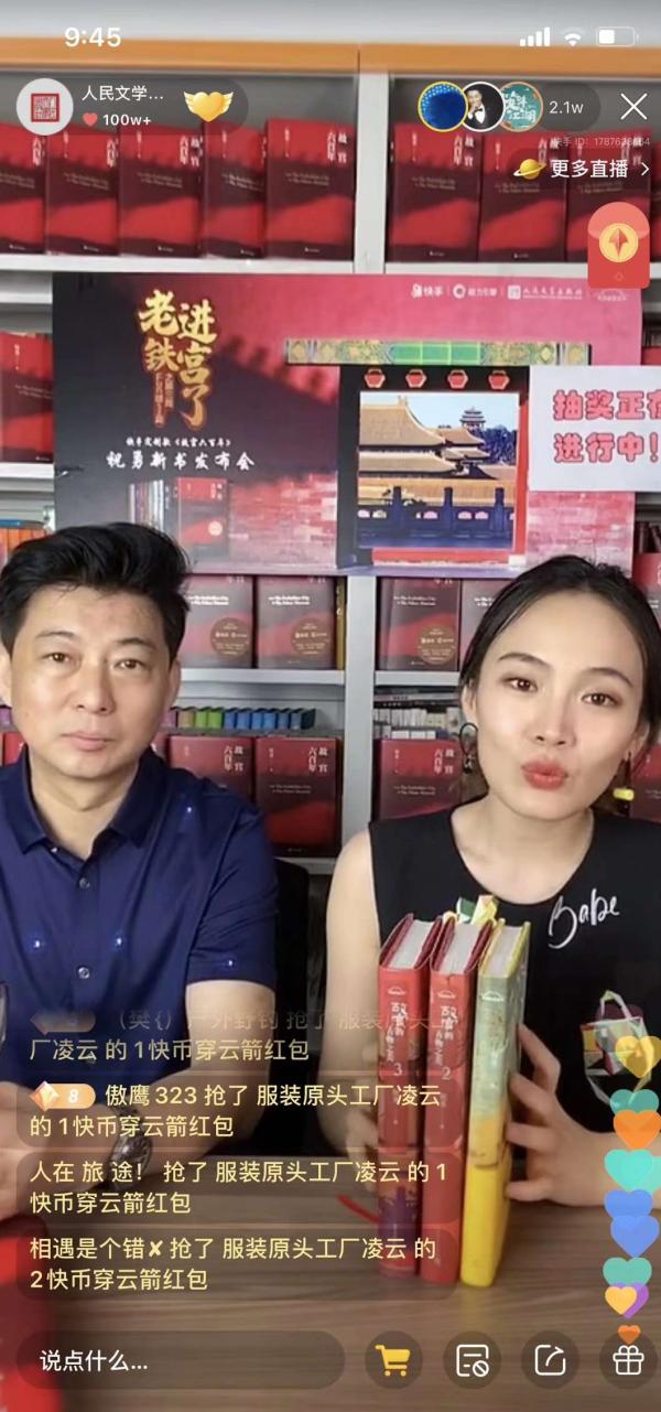 作為《故宮六百年》的出版方,人民文學出版社首次選擇在快手上進行直播,人民文學出版社社長助理宋強表示,“這次我們和快手聯合舉辦了祝勇老師的新書《故宮六百年》的新書發布會,同時也推出了人文社和快手的聯名款《故宮六百年》。對于傳統出版社來說是一次非常具有創新意義的嘗試。我們也希望未來能夠更多和快手平臺進行合作,更多地和讀者進行面對面的交流,從而多角度多元化,讓文學進入更多人的世界?!?/p>