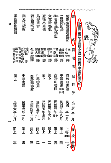民國四年七月教育部擬定成立的通俗教育研究會“以研究通俗教育事項,改良社會普及教育為宗旨”?,具體事項分小說、戲曲、講演三股,小說股所掌事項中有一項是“關于新舊小說之審核”?,這也是小說股的工作重心。周痩鵑這本《叢刻》就在《小說股第二次審核小說一覽表(中華民國六年)》?里,表中所列“書名”為“歐美名家短篇小說叢刊”,“出版年月”為“民國六年三月”,“等次”為“上等給獎”,冊數為“三冊”。由此可確定小說股審核的是平裝三冊本,此處出版年月的記載證實了筆者上一部分對平裝初版發行時間當為3月的推測。而此處所列書名《叢刊》而非《叢刻》可知取自封面,這也是小說股審核小說擬定評語的一個依據。
