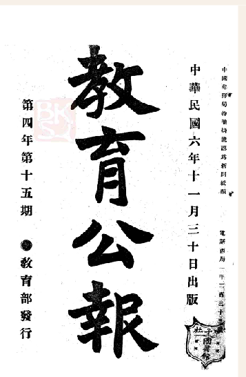 ?《教育公報》第四年第十五期,1917年11月30日出版,教育部教育公報經理處發行。