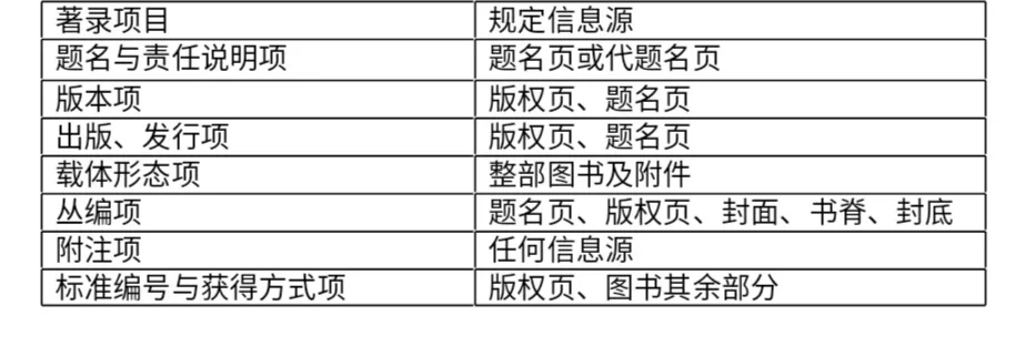 《中國文獻編目規則(第二版)》規定普通圖書著錄規則適用于民國圖書。2. 0. 5. 2條款規定了普通圖書各著錄項目的規定信息源及其選取的先后順序(如下表)。