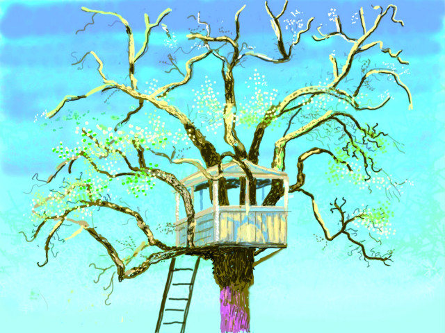 此外,英國畫家大衛·霍克尼也選擇在iPad端分享了10幅近期在法國隔離時創作的作品。