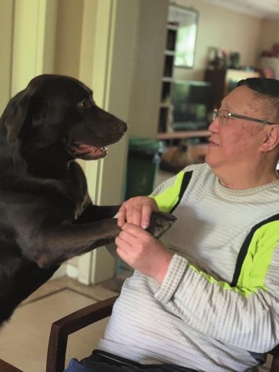 “狗生”的喜怒哀樂分明也映射著“人生”的悲歡離合,那些平凡的日常細節落到詩人敏感的心底,就化作了一首首繽紛的詩。如果說小狗“大咖”是拉布拉多犬里少見的咖啡色,這些詩句在我眼里都是純粹的金黃色,是一棵秋天的大樹在秋風里蹁躚的葉子,沐浴著太陽的光芒,呼應著白云的灑脫。不得不說高洪波先生有一顆不老的詩心愛心童心,在每一個跳躍的字符上都蓋上了屬于他獨有的豁達頑皮開朗溫暖的人格印章。
