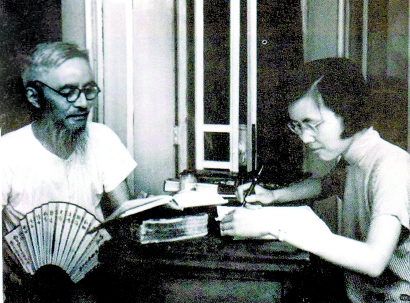 豐子愷在上海寓所日月樓與幼女豐一吟合譯《源氏物語》