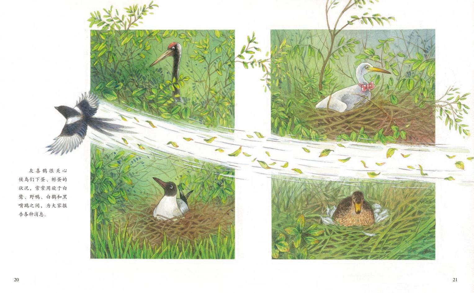 迎春花剛剛含苞待放,老白鷺早早地帶著一百多只白鷺,浩浩蕩蕩地進入了鳥類棲息地——大??跐竦?。這片濕地始終是白鷺、綠頭野鴨、黑嘴鷗和白鸛鳥們生兒育女的搖籃。盡管濕地的空氣越來越臭,水越來越臟,食物越來越難吃,葦子蕩、槐樹林、濕草甸萎縮得越來越小,但是夏候鳥們仍一如既往地回到這里筑巢、生蛋、哺育雛鳥。意外發生了,鳥兒們下的蛋都很奇怪,根本無法孵化出來,最終,大家越過了熟悉的故鄉,去遠方尋找新的棲息地……