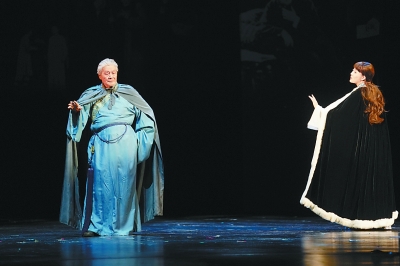 93歲老藝術家藍天野攜青年演員表演《蔡文姬》片段。本報記者 方非攝