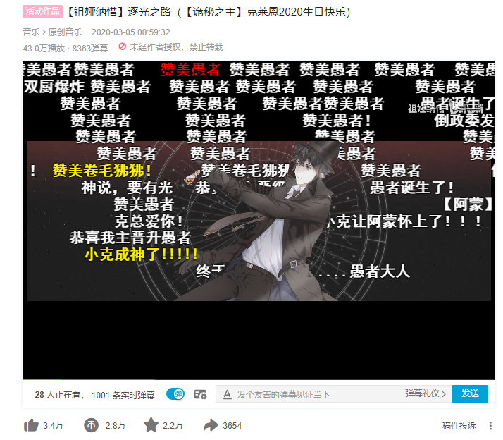 (粉絲為主角克萊恩慶生制作了同人歌曲,該作品在B站擁有43萬點擊)