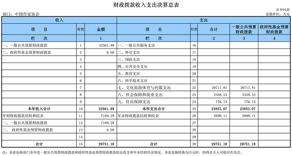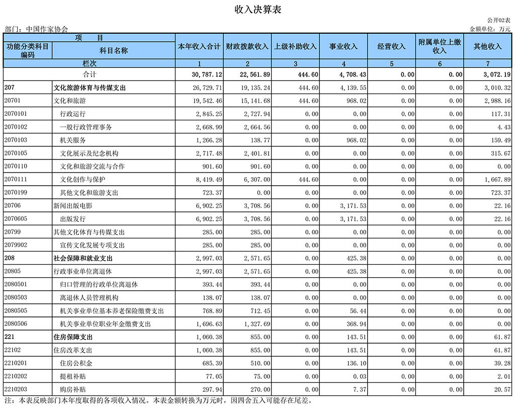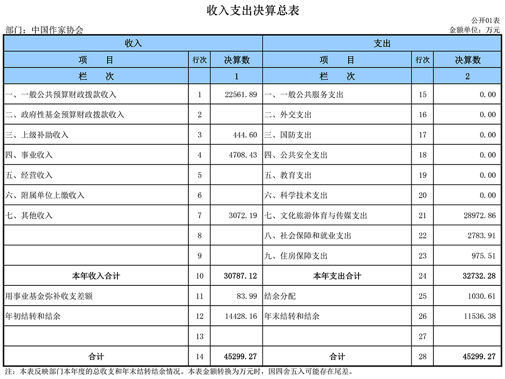 中國作家協會2019年部門決算包括中國作協本級決算及所屬11個事業單位決算,同比不變。