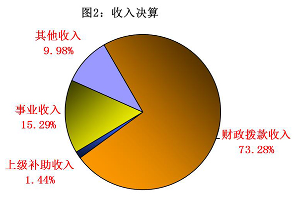 本年收入合計30787.12萬元,其中:財政撥款收入22561.89萬元,占73.28%;上級補助收入444.60萬元,占1.44%;事業收入4708.43萬元,占15.29%;其他收入3072.19萬元,占9.98%。