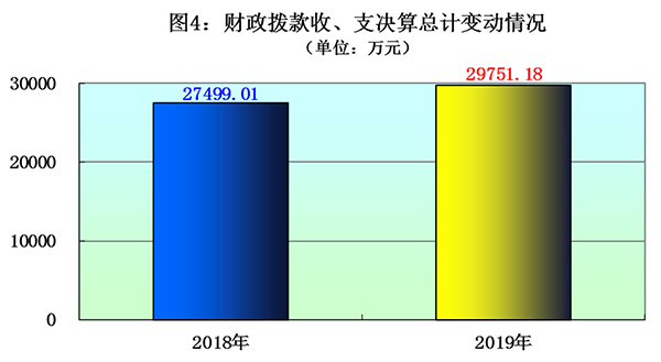 2019年度財政撥款收、支總計29751.18萬元。與2018年相比,財政撥款收、支總計各增加2252.17萬元,增幅8.19%,主要是文化旅游體育與傳媒支出中的一般行政管理事務和社會保障和就業支出中的機關事業單位職業年金繳費支出增加。