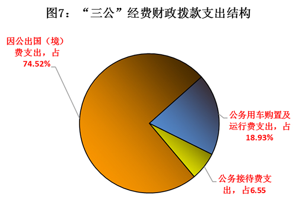 2019年度“三公”經費財政撥款支出決算中,因公出國(境)費支出決算429.76萬元,占74.52%;公務用車購置及運行費支出決算109.20萬元,占18.93%;公務接待費支出決算37.76萬元,占6.55%。具體情況如下: