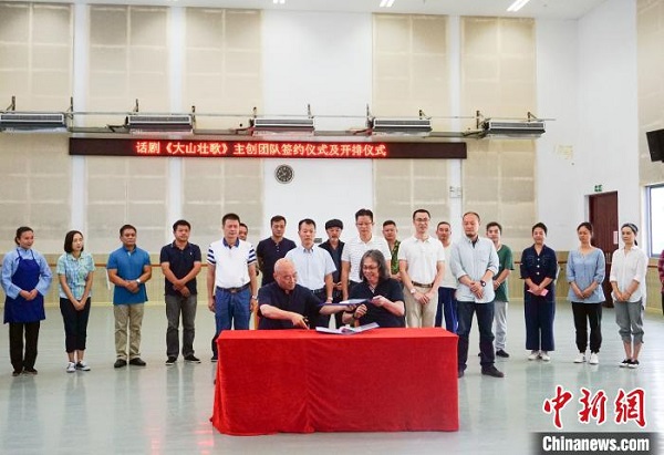7月17日,話劇《大山壯歌》主創團隊簽約儀式及開排儀式在南寧市舉行。 蔣園園 攝