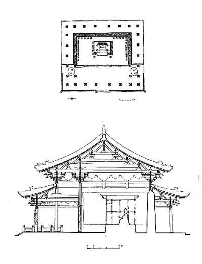 晉祠圣母殿平面剖面——引自《中國古代建筑史》