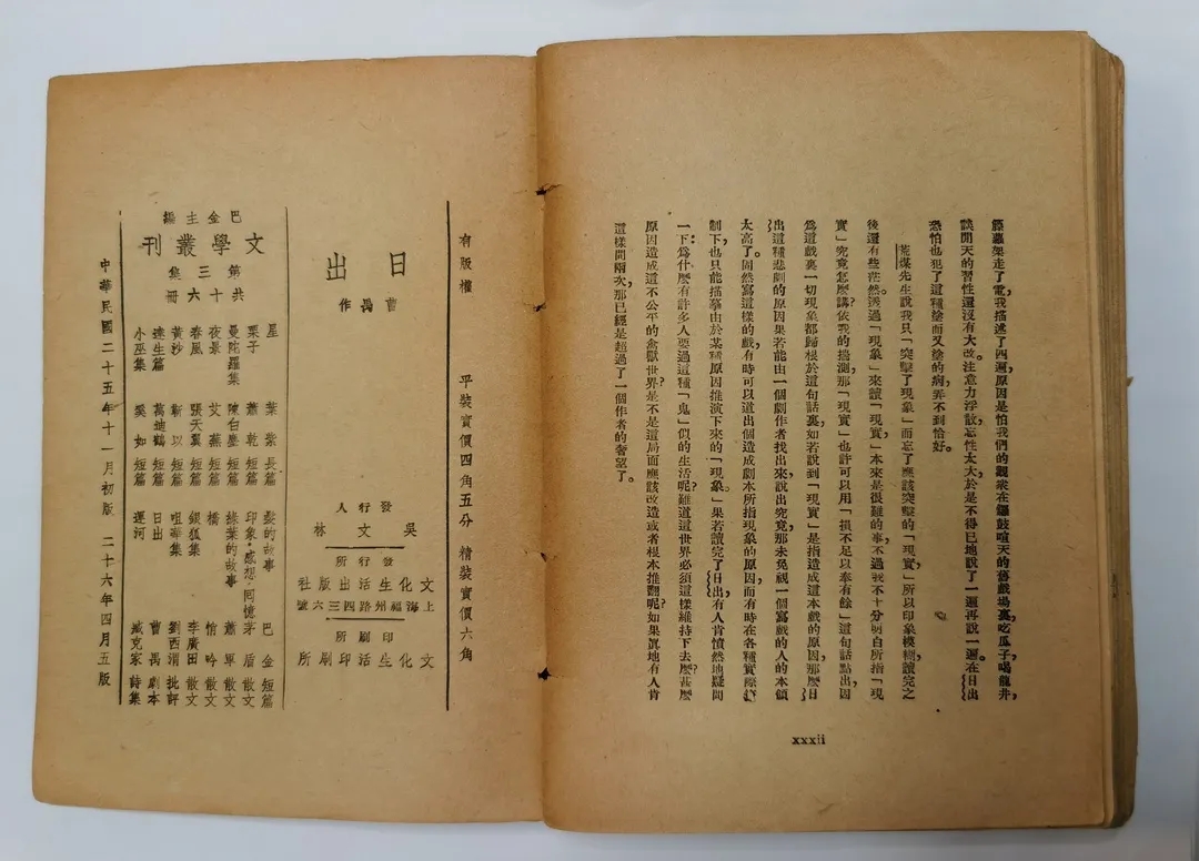 (1)潘克明,《關于〈日出〉初版本出版時間的質疑》,《中國現代文學研究叢刊》,1988年第1期。