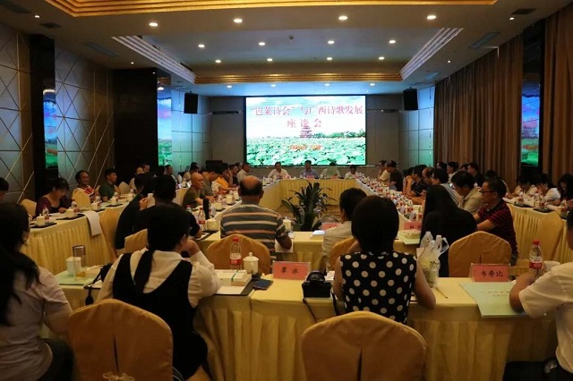 7月18日,由廣西民族報社、廣西散文學會、壯族文學創作促進會、中共覃塘區委、覃塘區人民政府聯合主辦的廣西多民族作家“走進覃塘感受荷韻”采風活動暨“岜萊詩會”與廣西詩歌發展座談會在貴港市覃塘區舉行。自治區文聯黨組成員、副主席牙韓彰,自治區民族宗教事務委員會二級巡視員覃漢華,中央民族大學原副校長、博士生導師黃鳳顯出席并講話,自治區文聯黨組成員、副主席石才夫傳來書面講話。座談會由壯族作家創作促進會會長、廣西散文學會副會長黃鵬主持。廣西民族報社社長韋尚雄、廣西民族出版社社長石朝雄、中共覃塘區委常委、宣傳部長黃建全等領導以及黃佩華、朱山坡等知名作家、詩人、評論家、文化學者和媒體人士等50多人參加了活動。