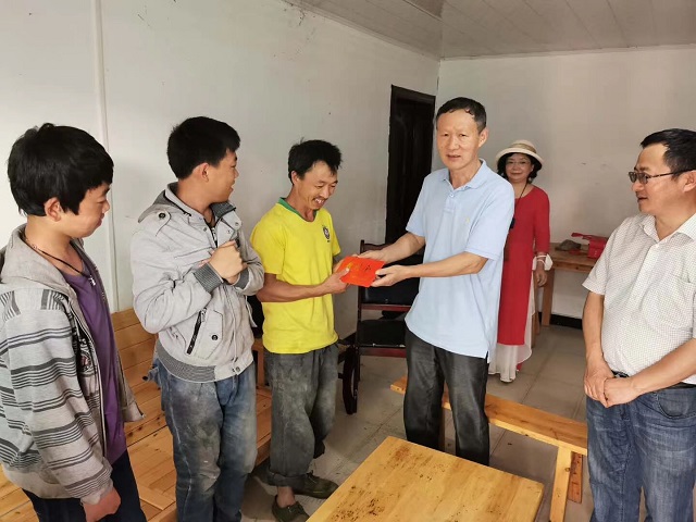 “苗家山寨、扶貧情深”,在重慶市人民檢察院籌資幫扶的便民服務中心里,王明凱、劉建春為大山里的孩子們送上了《春風,拽著人們奔跑》等作家們自己寫的書,并勉勵他們“好好學習、天天向上,努力成為國家的棟梁!”。在脫貧戶何祖華家中,劉建春代表大家送上慰問金,南風愛心助學會會長糜建國當即表示關注關心他的三個孩子。