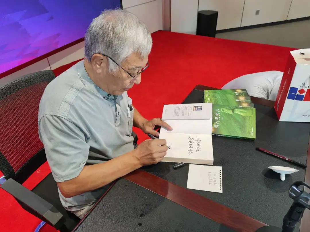 直播結束后,王晉康與專程趕來直播現場的書友互動并為其簽名