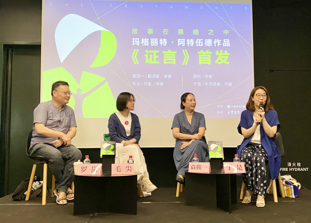 在今年上海書展期間,簡體中文版《證言》由上海譯文出版社在全國首發。8月14日,翻譯家袁筱一,學者毛尖、羅崗和《證言》譯者于是來到上海朵云書院旗艦店,和讀者一起閱讀基列國和使女的故事,聊聊阿特伍德書中的世界為何能喚起我們如此強烈的共鳴。