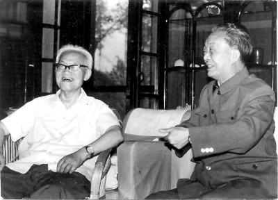 艾青(右)與巴金在交談 資料圖片