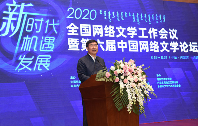 8月21日,由中國作家協會、中共內蒙古自治區委員會宣傳部主辦,中國作家協會網絡文學中心、內蒙古自治區文學藝術界聯合會、中共赤峰市委員會宣傳部承辦的第六屆中國網絡文學論壇在內蒙古自治區赤峰市開幕。中國作協黨組成員胡邦勝,內蒙古自治區黨委宣傳部副部長、電影局局長烏恩奇出席開幕式并致辭。開幕式由中國作協網絡文學中心副主任何弘主持。
