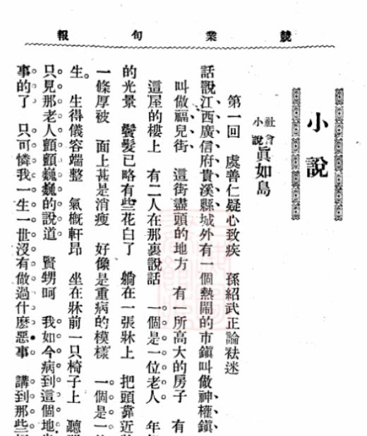 胡適以“希彊”的筆名從《競業旬報》第三期開始連載他的白話章回體小說《真如島》。從章回體形式、白話語體的角度看,《真如島》與明清白話小說沒有兩樣。小說敘述上的一些套路與明清白話小說基本一致,比如第二回最后部分: