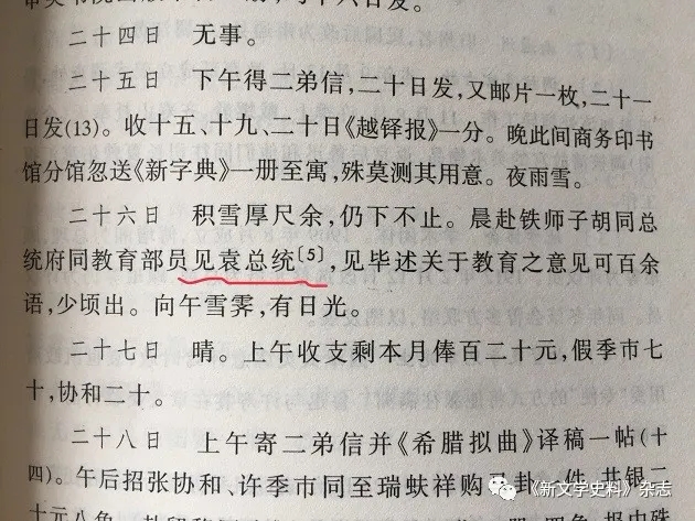 魯迅生前與袁世凱確有一面之緣。1912年12月26日魯迅日記記載:“晨赴鐵師子胡同總統府同教育部員見袁總統,見畢述關于教育之意見可百余語,少頃出?!痹绖P是1912年3月10日在京就任臨時大總統的,例行公事,當然要分批接見政府各部門的公職人員。魯迅作為教育部員之一,參加了一項集體活動。這次活動,時間很短,袁世凱接見之后僅“述關于教育之意見可百余語?!濒斞覆]有認為其中有什么重要指示,所以在日記中模糊記之,事后更無片言只語的贊美。魯迅當年在教育部的同事林冰骨回憶:“袁賊那天的說詞雖然空洞冗長,但除去反復說他以前在北洋大臣任內,曾編輯教科書數種來自我夸耀外,對于民國的新教育的方針和宗旨,便毫無認識。在座的我同魯迅先生他們,也只好相視一笑?!保ā段宜洃浀乃氖迥昵暗聂斞赶壬?,原載1956年10月6日《人民日報》)