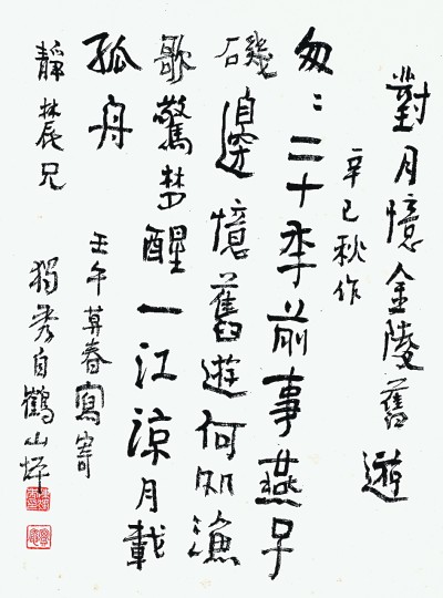 對月憶金陵舊游 陳獨秀/書