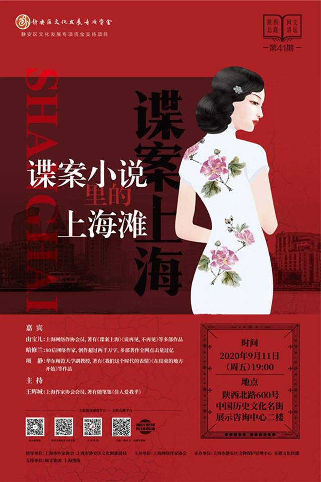 第41期陜西北路網文講壇定檔9月11日(周五),本期邀請網絡作家由寶兒、暗修蘭、華東師范大學副教授項靜、青年評論家王輝城一起聊聊諜案類型的網絡小說,以及青年一代網絡作家小說里描寫的上海往事、舊日城市。