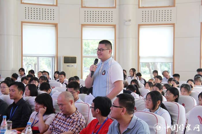 孫云曉與大家探討了青少年教育的話題,他認為臨沂三中有著濃厚的文學氛圍,這對青少年的成長有著重要的幫助作用,希望此次“文學進校園”能讓更多學生遇見“文學”,走進文學的世界,享受閱讀的快樂。馮藝點評了三中副校長在抗疫中創作的長詩《獻給你,我的戰友——致“戰疫”復課的高三老師》,認為該長詩是獻給戰疫復課老師的一首贊歌。作家簡默結合自己多年的散文創作經驗,對語文教育和作文寫作提出建設性意見,在點評學生作品時強調,創作的切口要小,要選擇一個最打動人心的角度進入寫作,切忌面面俱到。