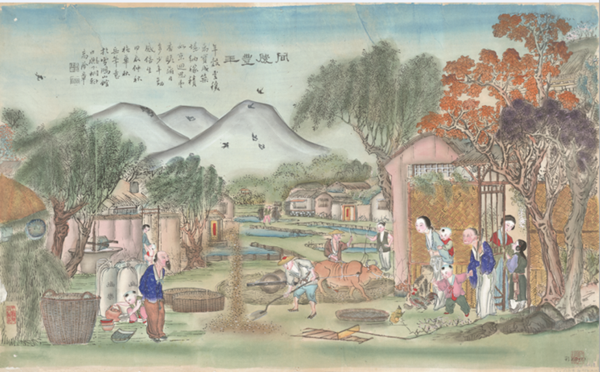 《同慶豐年》清代版,版印手繪,楊柳青雪鴻山館,縱60厘米,橫102厘米