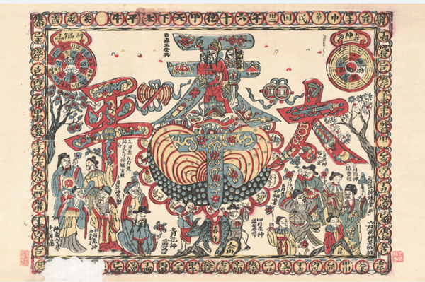 《天下太平》,桃花塢王榮興,清代版,套印年代:民國,縱33厘米,橫47厘米