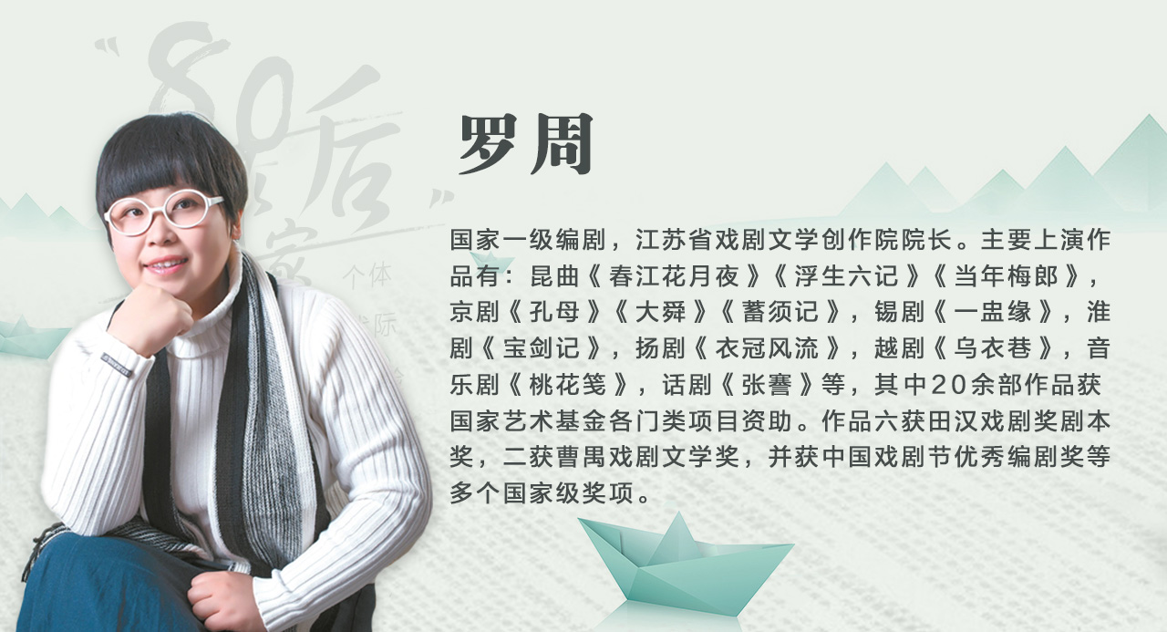 2009年,羅周還是剛到江蘇省劇目工作室的一位年輕編劇,人們看這個文學博士在這待了兩年,也未曾寫點什么,便猜測可能“博士”空有文學功底,但畢竟與舞臺有所疏隔。據羅周回憶,當時的自己比較懶散,2007年她從復旦大學文學博士畢業后,出人意料地選擇了一家漫畫公司做起了腳本創作。直到作曲家趙震方的一個電話,使她做出了一個現在看來最重要的決定——到江蘇省劇目工作室做編劇。就這樣,在上海求學10年的江西人羅周,只身來到舉目無親的南京,舍棄了當時月薪5000的優厚待遇,心甘情愿地拿著一個月1800塊錢的工資,做起了看似冷門的專職戲曲編劇。