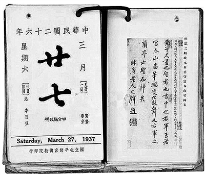1937年《故宮日歷》(臺式)