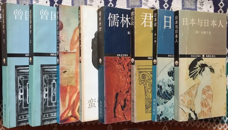 兩種類似小精裝的小三十二開日版書:《日本的外在與真相》(理查德·哈洛倫著,木下秀夫譯,時事通信社1970年4月版)與《日本文化的問題》(西田幾多郎著,巖波書店1982年3月版)