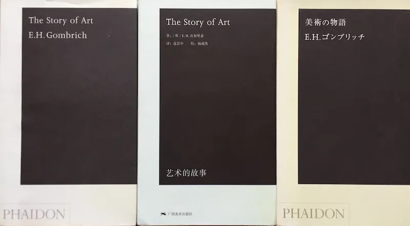 E. H. 貢布里希著《藝術的故事》,英、中、日文版。英、日文版為英國菲登版,中文版為廣西美術版,連版式裝幀都原汁原味地從菲登引進,也是南大社瘦版小精裝的由來