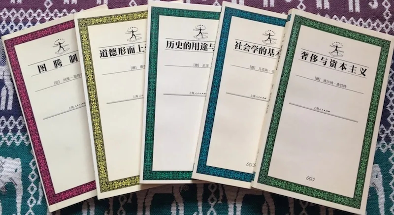 再往前回溯,2000年至2002年,上海人民出版社推出了一套“袖珍經典”(Pocket Classics)叢書,囊括了曾對近現代文明產生過深刻影響的法德兩國知識巨人的九種小書。普通平裝、編號,統一的Logo和裝幀形式,像商務版“漢譯名著”或巖波新書那樣,不同的學術領域(哲學、社會學、人類學等),以不同顏色的來區分,通俗而又不失學術味道。我收了其中五種:康德的《道德形而上學原理》、尼采《歷史的用途與濫用》、列維-斯特勞斯《圖騰制度》、馬克斯·韋伯《社會學的基本原理》和維爾納·桑巴特的《奢侈與資本主義》。