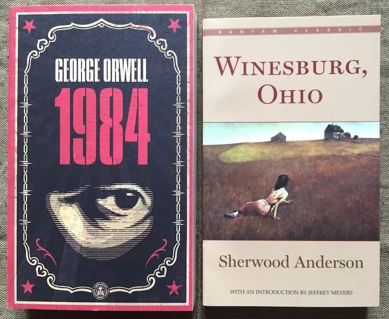 作者藏兩種英文文庫:英國企鵝叢書《1984》和美國矮腳雞叢書《小鎮畸人》