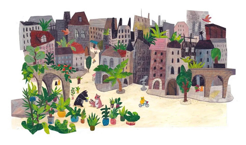 今年專業組年度大獎頒給了英國插畫師卡羅琳·佩德勒(Caroline Pedler)。在她的系列插畫作品《沒想到成了園丁》中,主人公即將成為一位園丁,她分享種子和植物,將一座灰暗之城轉變為一個美麗宜居的地方??_琳說這個故事靈感來源于自己的生活:“我的一個家庭成員被工作壓得不堪重負,最終不得不停止工作,整整一年他都無法工作,做任何事情都提不起精神。然而,園藝幫助他找尋到了自我,開始重新生活。于是,他辭去了原來的工作,成為一名全職園丁,生活比之前更加幸福了?!?/p>