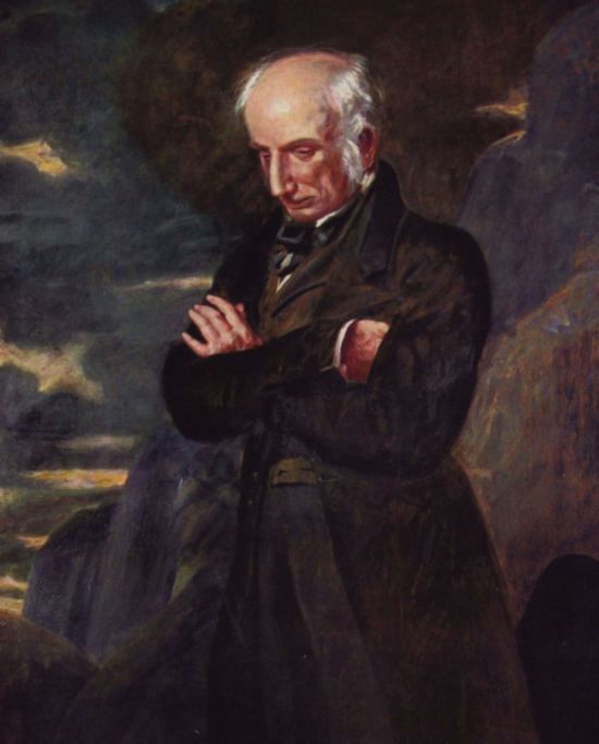 在有機會來英國與熟悉威廉?華茲華斯之前,水仙花是我對華茲華斯與英格蘭認識的重要的一部分。試問所有英語專業的人以及喜歡西方詩歌的人誰不知道“我孤獨地漫游,像一朵云(飛白 譯)”(I wandered lonely as a cloud)這首在國內被等同于、甚至以《水仙花》命名的詩呢?來到英國的第一天,在飯桌上,從沒進過一天學堂的英國老房東聽我說研究華茲華斯時,出口誦出“I wandered lonely as a cloud”。這是多么讓人驚嘆華茲華斯以及這首詩的受歡迎程度。春天到來的時候,房東在院子里喊我去看“華茲華斯的水仙花”。那是2014年春天,我在英國度過的第一個春天。那一年,我在家里、路邊、學校里、花園里、湖邊、樹下看到了華茲華斯筆下隨風飄動比銀河里的星星還要明亮的金黃色的水仙花。此刻,英格蘭的春天濕噠噠的,風、雨、雪交錯。但,窗外院子里的水仙花明亮嬌艷金燦燦地開在我的眼前。呵,華茲華斯的水仙花!華茲華斯畫像