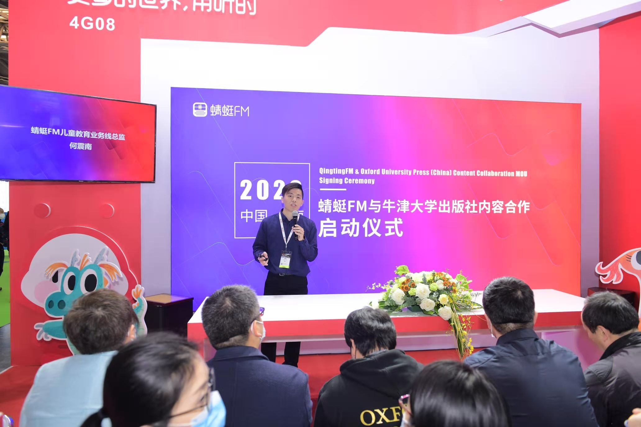 11月13日,在上海國際童書展上,網絡音頻平臺蜻蜓FM宣布同牛津大學出版社達成內容合作意向,蜻蜓FM將基于牛津最新出版的《牛津英語話中國》(Talk About China with Oxford)系列的內容開發,包括科學、英語等全科教育產品,致力于在兒童教育領域挖掘全場景生態合作,共同進行內容創作與流量建設。